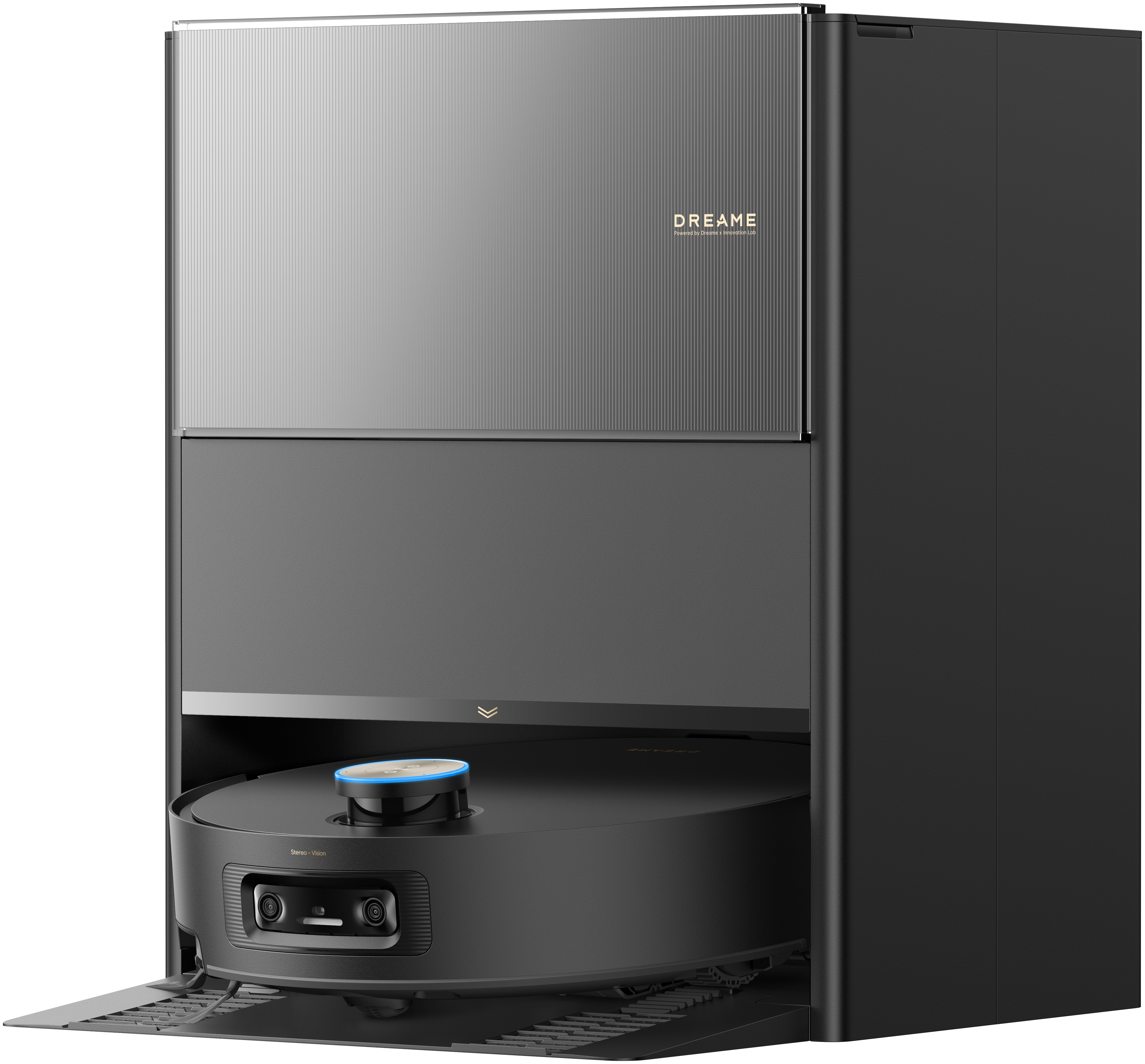 Станция полностью берёт на себя обслуживание робота. Она опустошает встроенный пылесборник объемом 0.22 л в большой контейнер станции на 2.5 л, подаёт чистую воду из резервуара на 4 л и возвращает робота к уборке после зарядки. Такой подход значительно снижает необходимость ручного ухода и делает модель почти автономной.