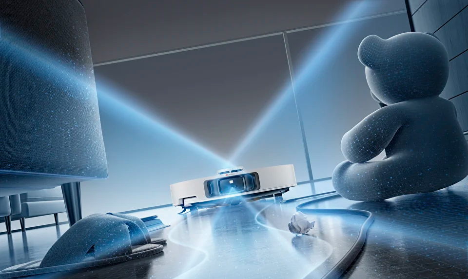LiDAR, камеры, датчики перепада высоты и обнаружения ковров обеспечивают точную ориентацию в пространстве. Робот строит карту помещения, поддерживает ограничение зон и уборку по расписанию.