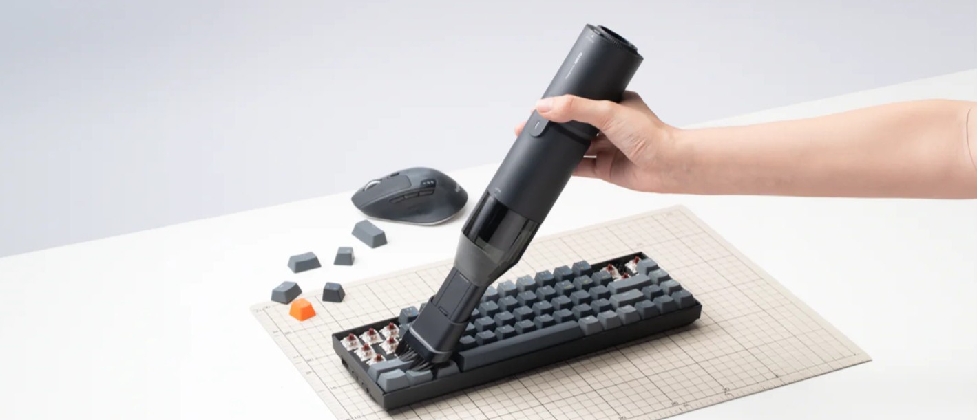 Внутри установлен бесщеточный BLDC-мотор мощностью 120 Вт. Он обеспечивает силу всасывания до 15 000 Па и поток воздуха до 500 л/мин. Этого хватает для очистки клавиатур, техники, салона автомобиля, труднодоступных щелей, а также для быстрой продувки поверхностей и работы в режиме воздуходувки. Доступны два режима работы — под разные задачи и уровень загрязнений.