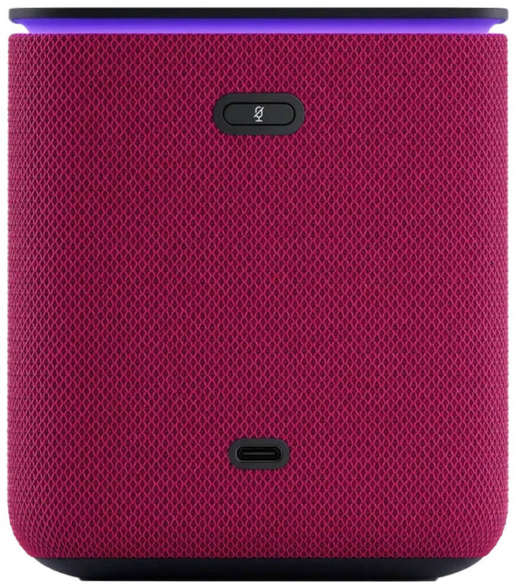 Приятный корпус с тканевой отделкой, доступный в разных расцветках текстильной части, не только придает колонке стильный внешний вид, но и создает приятные тактильные ощущения. Он также защищает динамики и слегка смягчает звук, а встроенный экран эффектно светится прямо на текстильной стороне.